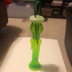 Vintage The Martian By BETRAS 16” Tall Neon Green Alien Drink Bottle With Straw