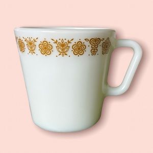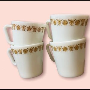 VINTAGE Pyrex Butterfly Gold milk glass mugs 4pc
