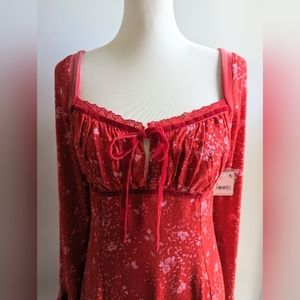 NWT.....Free People Tess Velvet-Trim Red Floral Mini Dress Size Small