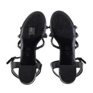 Chanel Women's Chain Ankle Strap Sandals Leather Black