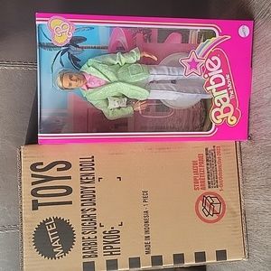 Inspired by “Sugar’s Daddy” in Barbie The Movie, this collectible Ken doll looks positively dapper in his pastel suit. Taking inspiration from both his character on the big screen as well as a piece of Mattel history, he comes with a little white dog named Sugar. Celebrating Barbie The Movie, “Sugar’s Daddy” Ken doll makes a great gift for fans of Ken – and Sugar!