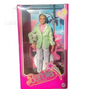 Ken doll’s pastel suit is pulled straight from the feature film. He pairs a tailored mint green jacket with a pink polo shirt and crisp white trousers.