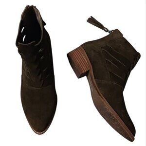 Little girls special occasion dress in beautiful preowned condition. The color is a deep red and has red sequins throughout. Zips close and has an attacked sash belt that ties at the back. Has an underslip with a little netting that helps the dress poof out a little. Size 5-6.