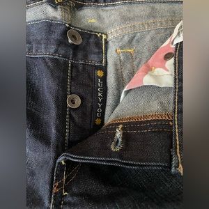 Lucky Brand Lil Maggie flare leg distressed jeans looks to be NWOT not sure. Size 16/33 please see pics for measurements. Hidden button fly closure dark acid wash 5 pockets 100% cotton no stretch. $$27 OBO. Inseam 30.5” Hips 42” Waist 34.5”