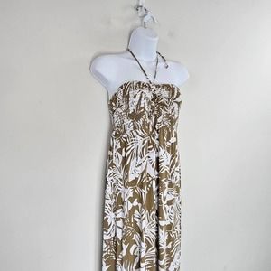 Tommy Bahama Maxi Dress Smocked Halter Hawaiian Floral Print Flowy Size SP