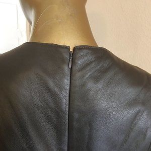 Butter Soft 100% Genuine Chocolate Brown leather makes for a beautiful, fully lined, sheath dress with raw hem. Sleeveless with a round neck, shoulder princess seams front and back, waist seam and hidden back zip.