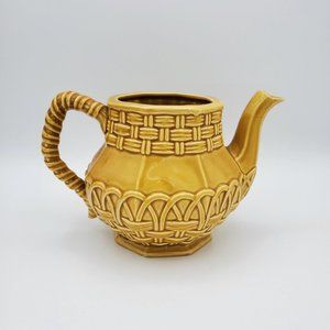 Mustard Yellow Basket Woven Glazed Decorative Tea Pot Cottagecore