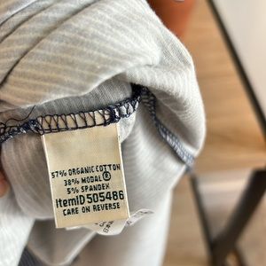 57% Organic Cotton, 38% Modal, 5% Spandex mid-weight stretch Jersey knit fabric. Super soft.