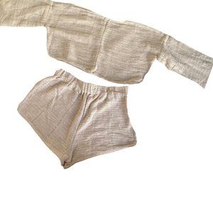 *flawed* Cotton On Body Woven Top & Shorts Outfit Set Cropped Bell Sleeve Matching Size Small.