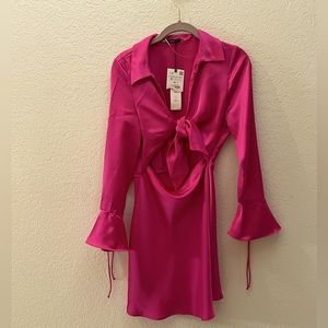 Zara Satin Effect Mini Dress Fushia. Blogger fave.NWT💃🏻🔥