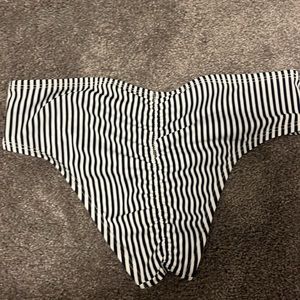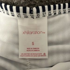This navy and white striped small xhilaration bikini bottom has been worn once it is ruched down the butt no stains and in great condition looks brand new no signs of wear.