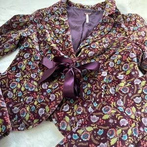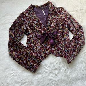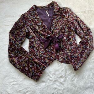 FREE PEOPLE Floral Velvet Boho Preppy Fall Winter Blazer Pylurple Jacket.Sz 2 .