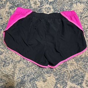These running shorts are in used condition. But they are still in good condition. The name and size has been worn off so I’m not sure the size. But I am a small and they fit me. They have a draw string as well.