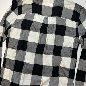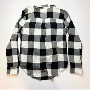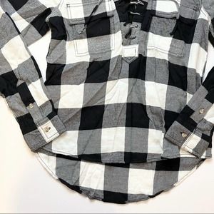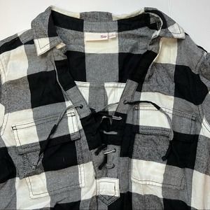 SO checkered plaid long sleeve blouse black white lace up v neck top Size small