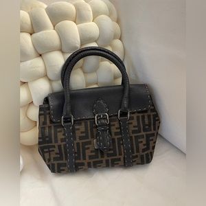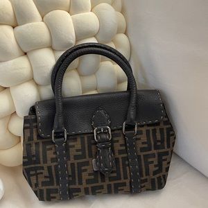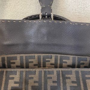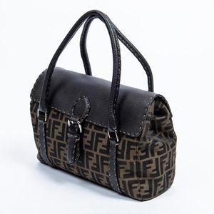 Fendi Selleria handbag in brown monogram canvas and brown grained leather