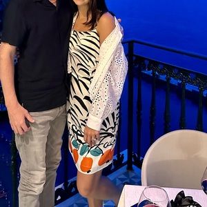 STAUD size 6 white citrus printer sleeveless dress. Square neckline, side zipper closure.