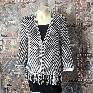 Chico's crochet Cardigan fringes honeycomb pattern Chico's Size 1 US size UA 8/M
