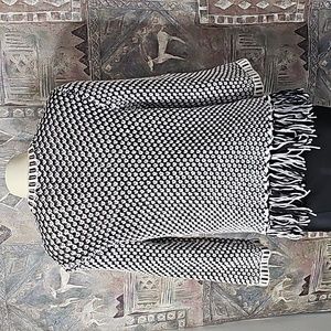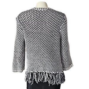 fringe watching: You will instantly be obsessed with the look and feel of this textured cardigan, in a high contrast honeycomb pattern finished in fringe and contrasting border details.