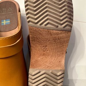 It’s all about versatility with the Alma. This all leather, Swedish wooden clog has a classic anatomic shape with a modest wooden platform and chunky heel. An adjustable sling back strap can be worn two ways. Made in Sweden and crafted of Swedish Alderwood and Italian leather.