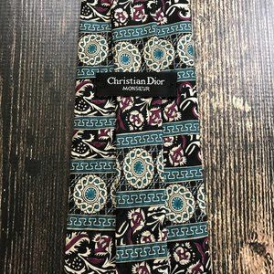 CHRISTIAN DIOR Monsiuer Neck Tie Silk USA Made Bold Print Teal Burgundy