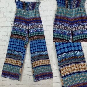 Nice preloved black wide leg pants with burnout velvet free flowing panels in front & back. Back zipper. By MSK