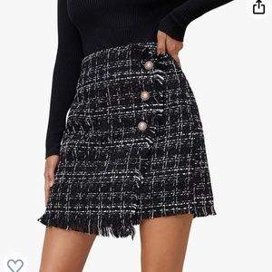 Women's Elegant High Waist A-line plaid tweed mini skirt Size L