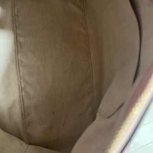 handle has some discoloration. There are minor scratches on the hardware and a part dirt on the front side. If you don't put anything inside, you will get shapeless. Although it has signs of use as described above, it is still in a condition that can be used for a long time.