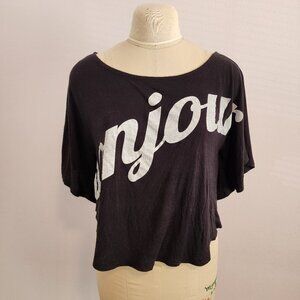* Very small black dot on fabric below front graphic of t-shirt, see photo with dime for size reference