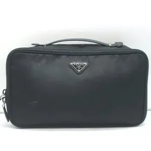 Prada Toiletry Bag Black Nylon & Saffiano Leather Top Handle Travel Pouch