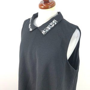 New with tag Asos black rhinestone collar maternity dress. Dress is sleeveless with rhinestone embellished shirt collar. A-line flare silhouette. Ribbed all over. Hidden back zipper with keyhole and hook and eye closure. Not original owner. See pictures. Sold as is.