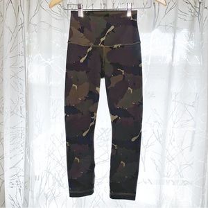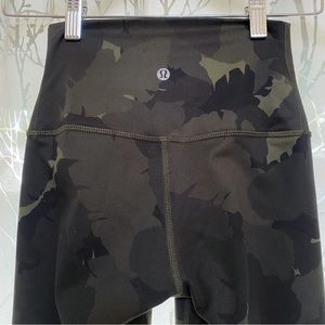 Lululemon green camo palm party high low roll waist wunder under crop leggings