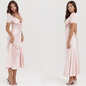 House of CB 'Rafaela' Soft Peach Pure Silk & Lace Dress NWOT