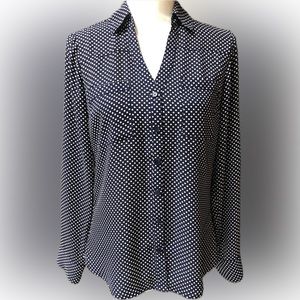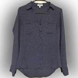 Express Portofino polka dot Navy longsleeve shirt size Small