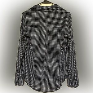 This beautiful black-and-white polka dot Express top is perfect for any occasion. It's made of soft, stretchy fabric that will make you feel confident and stylish. The polka dots add a pop of color and make the shirt stand out from the crowd.