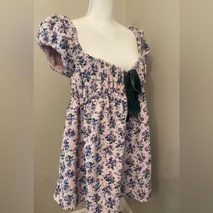 Free People Gaia Corduroy Floral Puff Sleeve Top