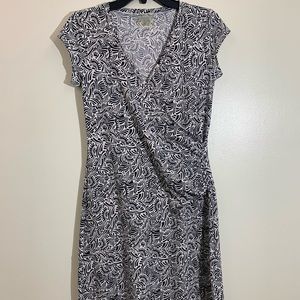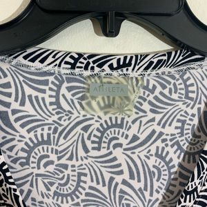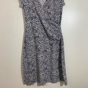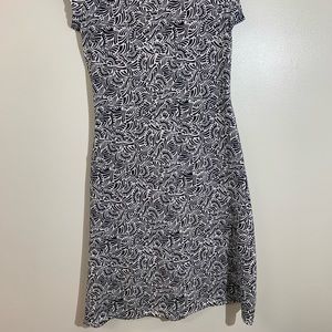 Athleta | Black & White Geometric Design Faux Wrap Knee Length Dress | Small length 44’ waist 15 pit to pit 15