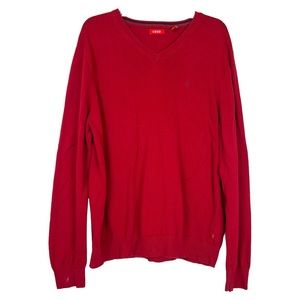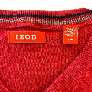 Izod Men’s Red Long Sleeve V-Neck Knit Vintage Cotton Sweater Top Shirt sz Large