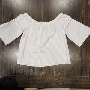 Brand new with tags Abercrombie & Fitch white and light gray stripe off-shoulder top with short bell sleeves. Lightweight cotton and polyester blend, great summer shirt. Size Small, please see measurements. Last pic is stock image.