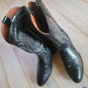 Beautiful Dan Post Winston lizard black leather classic cowboy boots. Leather lined. retails $345