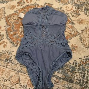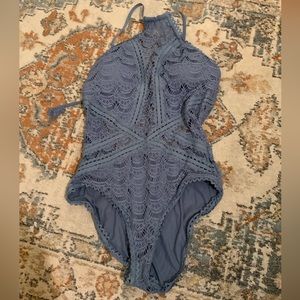 Becca by Rebecca Virtue periwinkle blue crochet halter tie one piece swimsuit 🩵
