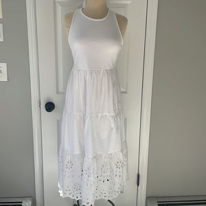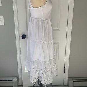 Jcrew White tiered maxi dress with embroidery bottom. Lovely summer dress very well made!