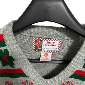 Merry Christmas Ugly Christmas V Neck Sweater Size Small Tree Dog