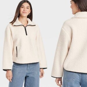 NWOT Express cream pleated high waisted faux leather mini skirt