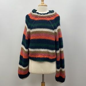 Zara Striped Slouchy Chunky Knit Balloon Sleeve Crop Sweater Retro Boho Small