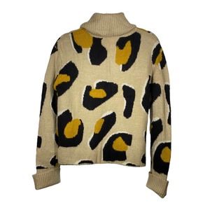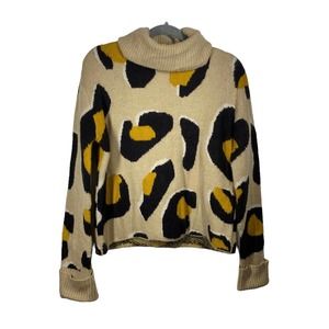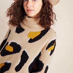 Anthropologie Moth Georgia Leopard Animal Turtleneck Sweater Tan Black Sz Small