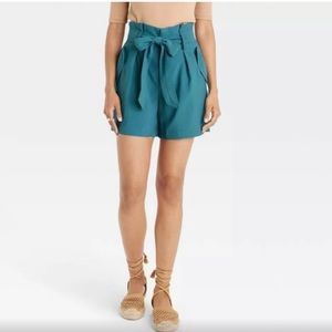 A New Day paperbag Tie Waist Teal Shorts Sz 18