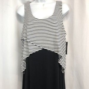 Style Co Womens Black White Medium Lagenlook Maxi Tank Sleeveless Long Dress NWT