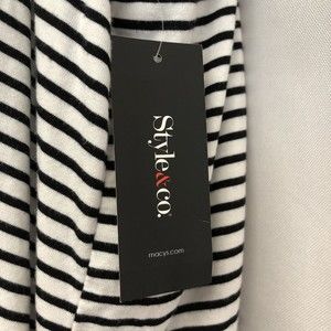 Very Pretty! Style & Co Womens Black and White Size Medium Lagenlook Layered Look, Mixed Print Maxi Long Tank Dress. New with the tags. Retails for 69.00 and the tag reads: Mythical Jungle, Deep Black. Super comfortable and soft dress. Approx. measurements laid flat: Length 52 inches measured from the back neckline to the bottom hem. Chest measures 18 inches from underarm to underarm