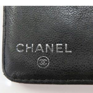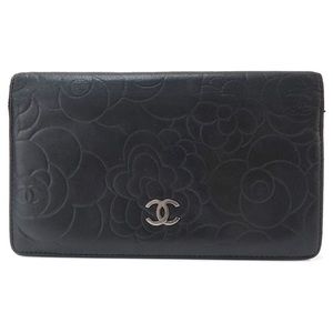 AUTH CHANEL Camellia Lambskin Long Wallet Black