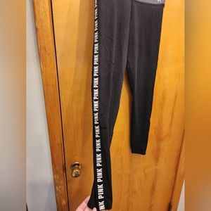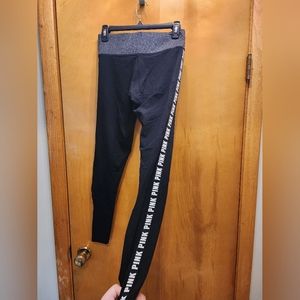 VS PINK high/flat waisted leggings size small. very lightly worn. has the words PINK down both sides.